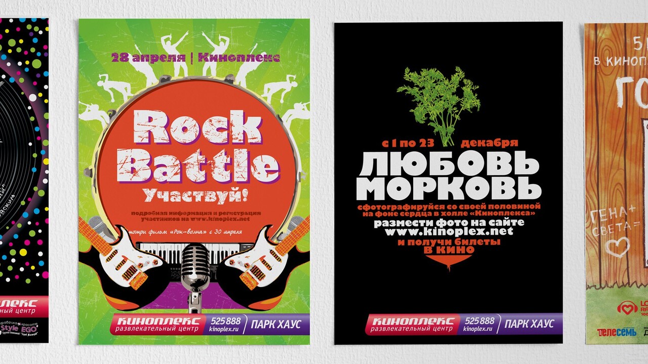 ЗАДАЧА: Разработать серию плакатов-афиш для мероприятий сети кинотеатров «Киноплекс».