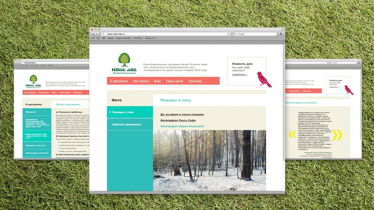 ЗАДАЧА: Разработать сайт для городской благотворительной программы «Наш лес», направленной на восстановление леса, пострадавшего во время пожаров в Тольятти летом 2010 года.
