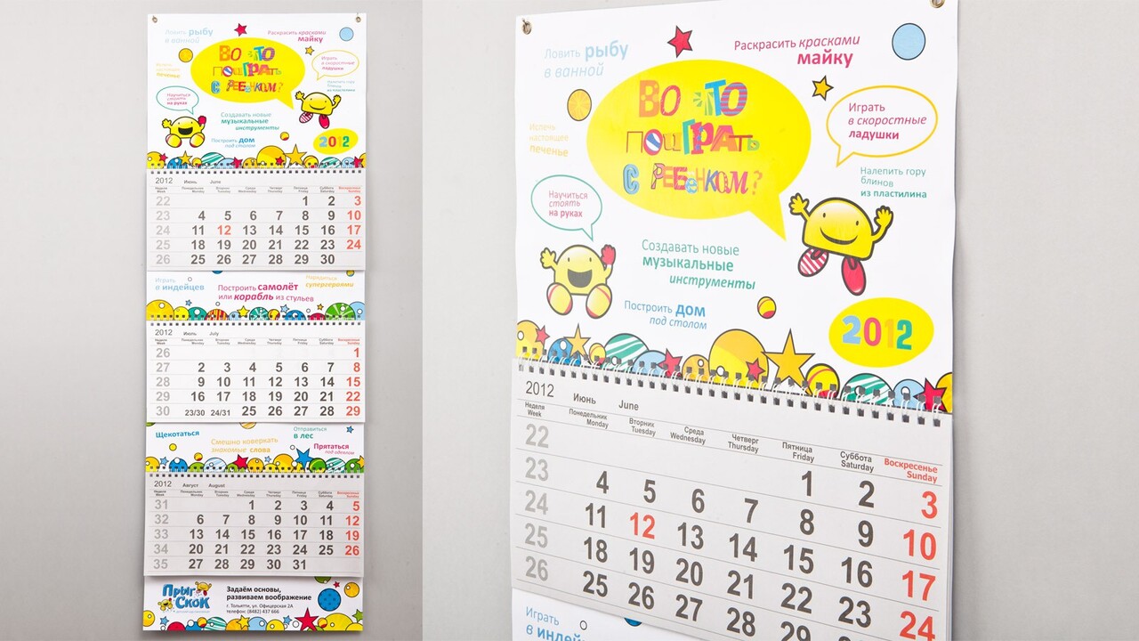 ЗАДАЧА: Детский сад-пансионат «Прыг-Скок» занимается всесторонним развитием детей дошкольного возраста. Перед началом 2012 года компания обратилась к нам с просьбой спроектировать новогодний календарь.