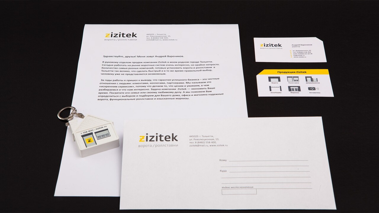 ЗАДАЧА: Компания Zizitek занимается проектированием, производством, установкой, автоматизацией и обслуживанием воротных систем и роллставней для домов и офисов. Начав свой бизнес на рынке воротных систем, компания обратилась к нам за разработкой названия, фирменного блока и фирменного стиля.