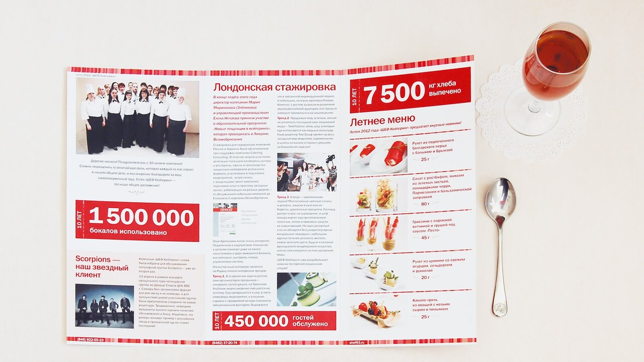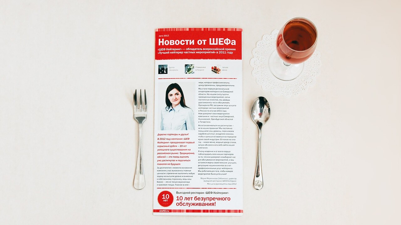 ЗАДАЧА: Выпустить в свет буклет для фуршета в честь 10-летнего юбилея выездного ресторана «ШЕФ Кейтеринг».