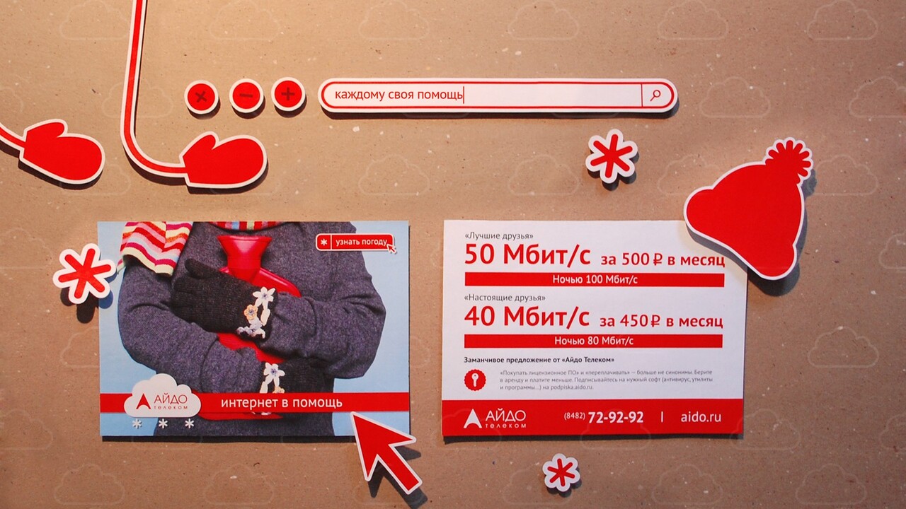 ЗАДАЧА: Разработать концепцию рекламной кампании интернет-провайдера «Айдо Телеком», которая бы транслировалась на серию ежемесячных рекламных листовок.