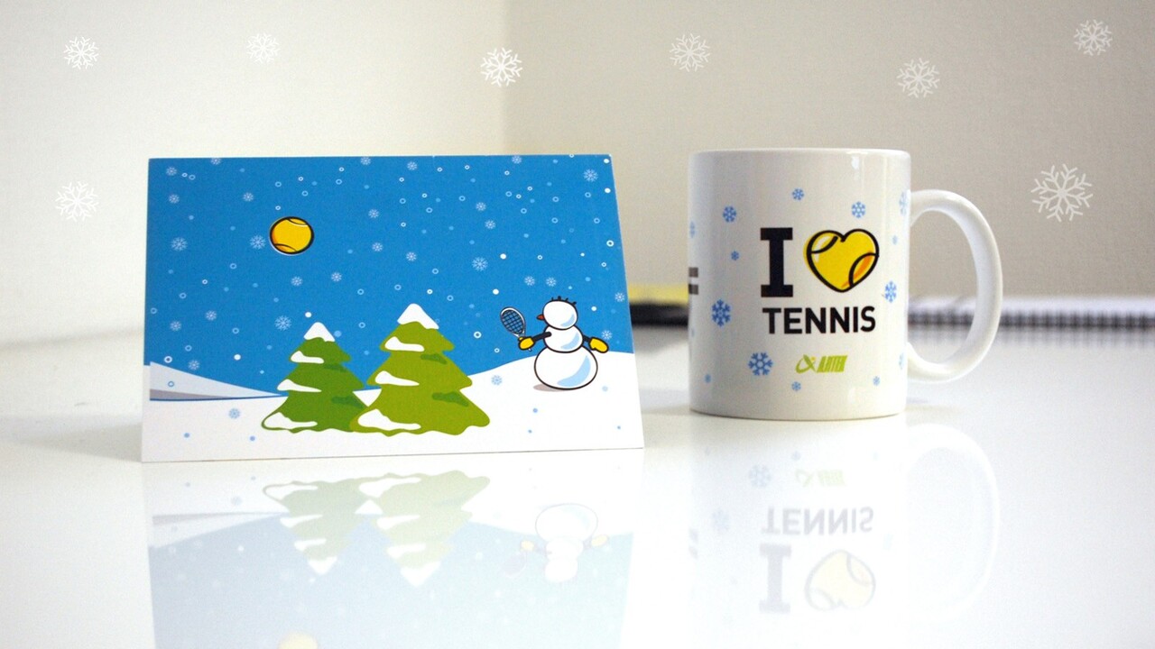 РЕШЕНИЕ: На кружку нанесено послание «I love Altek = I love tennis», и в нем знак «love» выполнен в виде сердца, напоминающего теннисный мяч. Глянцевое покрытие и яркие цвета открытки привлекают внимание адресата. С подачи снеговика прямо в руки летит теннисный мяч с новогодним поздравлением. Внутри на фоне падающего снега – слова поздравления, подписанные директором комплекса.
