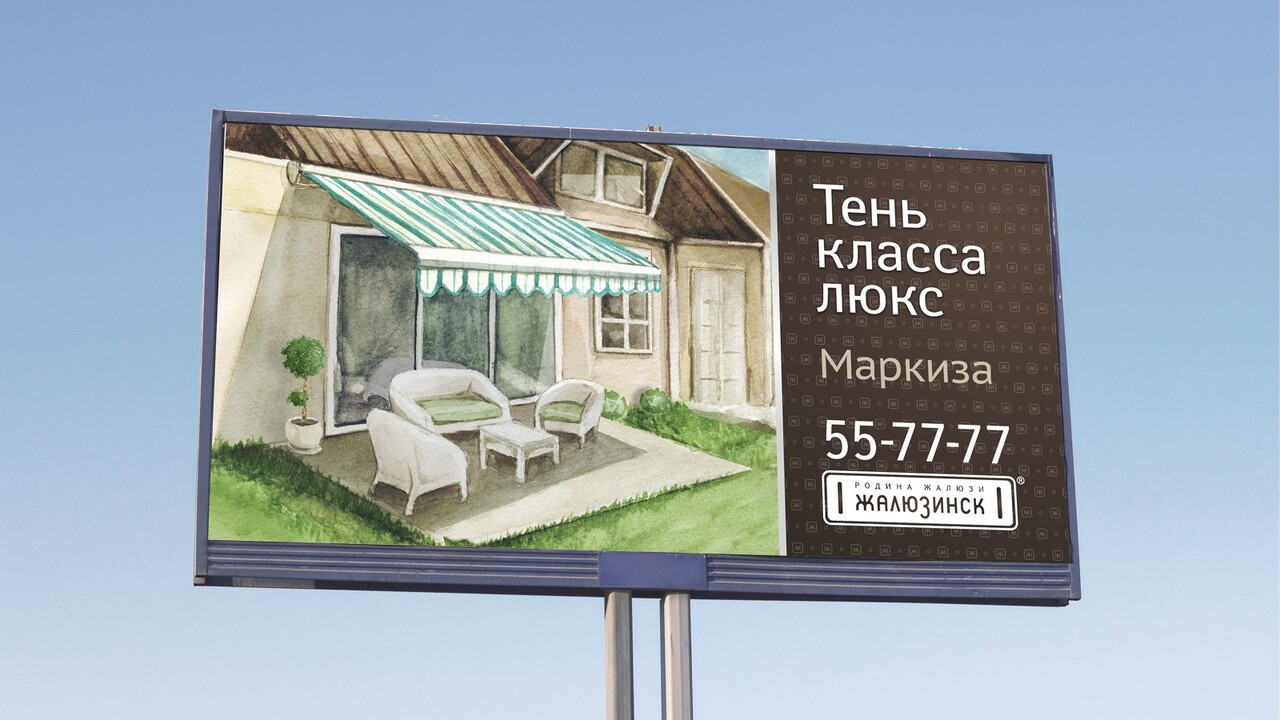 ЗАДАЧА: Разработать рекламную кампанию для специалиста в области солнцезащитных систем «Жалюзинск», проиллюстрировав маркизы и жалюзи для зимних садов.