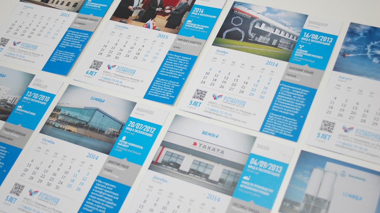 ЗАДАЧА: Спроектировать календарь на два грядущих года в нетривиальной карточной форме на подставке для Корпорации развития Ульяновской области.