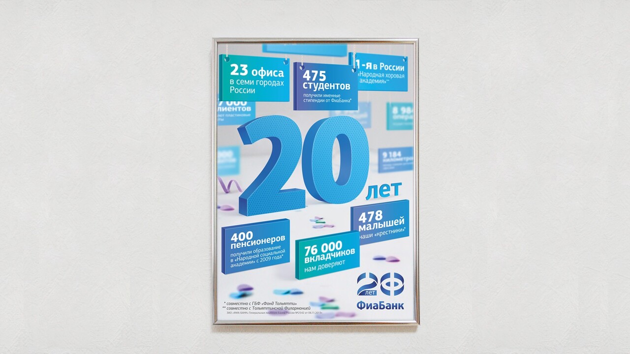 ИДЕЯ: Отражение малой толики достижений, успехов и социальных проектов, которые успел совершить банк за 20-летний этап свое жизни.