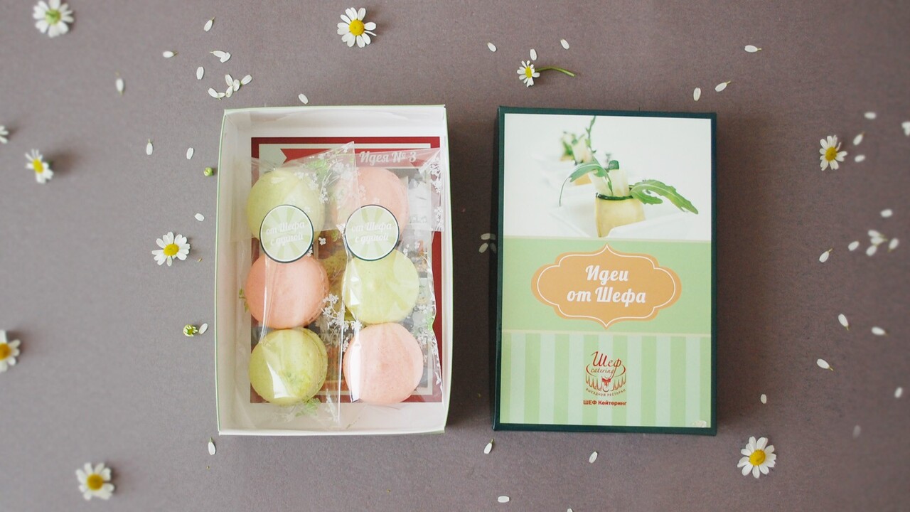РЕШЕНИЕ: Вкусные идеи праздников на любой вкус превратились в открытки с нежным оформлением в пастельных тонах, которое не отвлекает внимание от самого главного – меню угощений и праздников. А чтобы при чтении было чем утолить свой не на шутку разыгравшийся аппетит, «ШЕФ» заботливо предлагает целый стратегический набор тающих во рту макарунсов. Одним словом, 33 удовольствия!