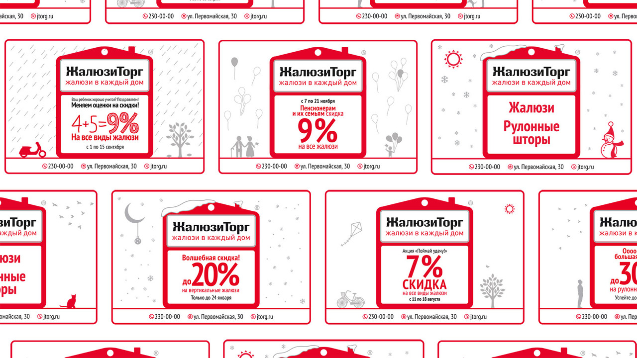 ЗАДАЧА: ежемесячное сопровождение рекламными материалами производителя жалюзи.