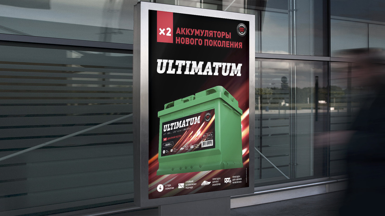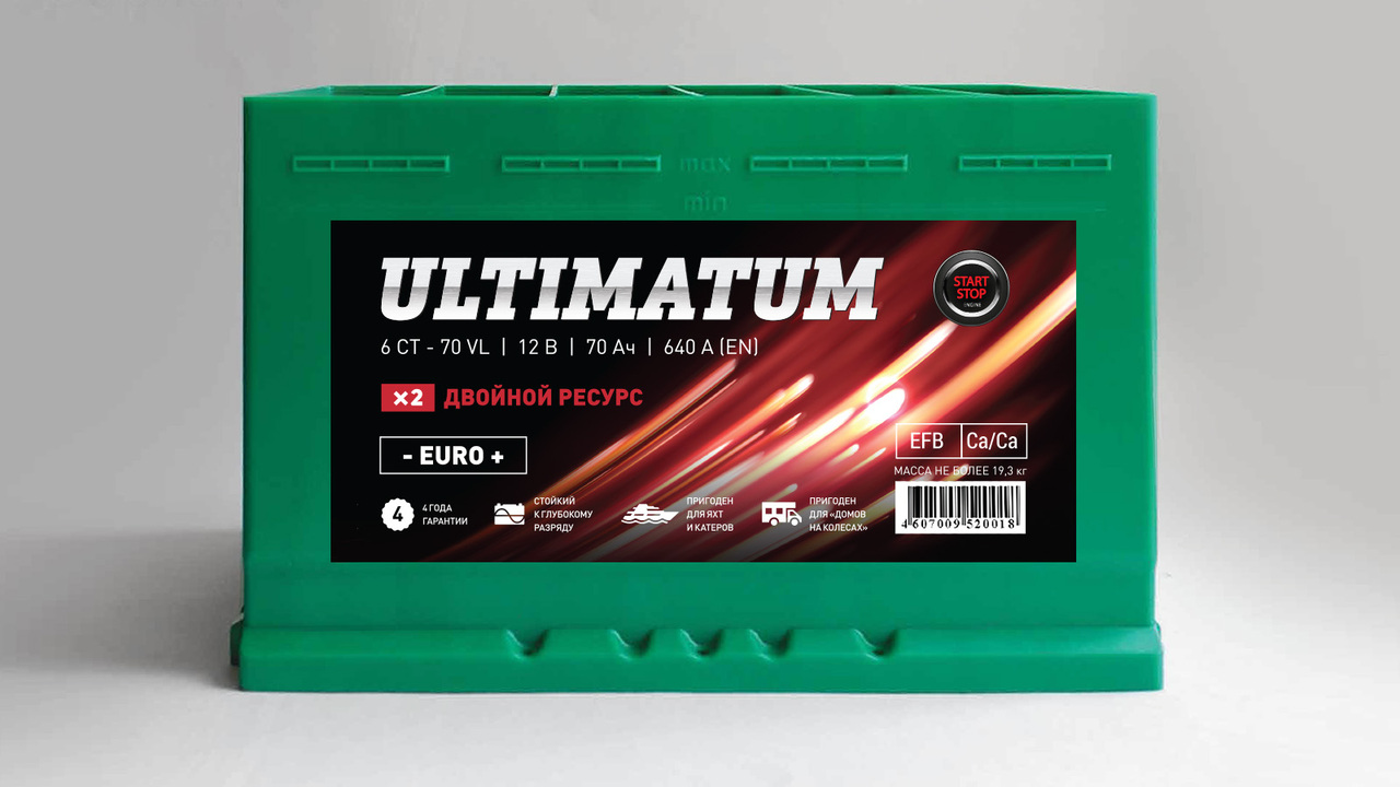 ЗАДАЧА: Разработать логотип и этикетку для аккумулятора ULTIMATUM, нового продукта завода «Аком».
